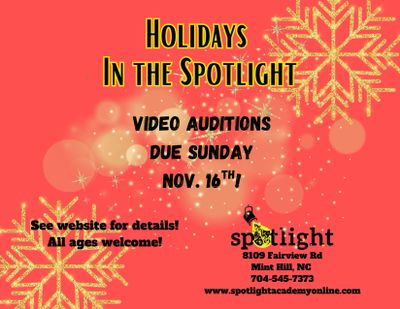 Video auditions will be due Sunday Nov. 16th! (EXTENDED TO WED. 11/19)